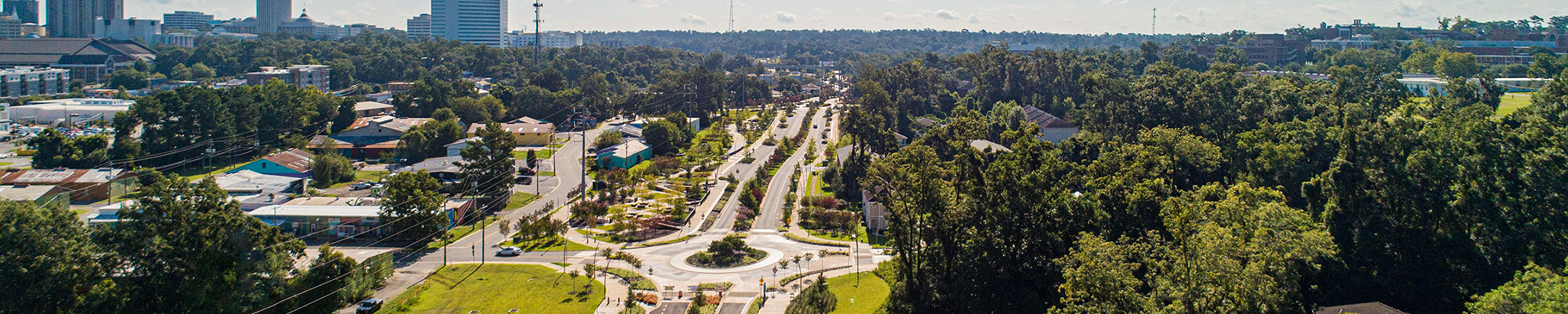 an overhead view of a roundabout on FAMU Way.